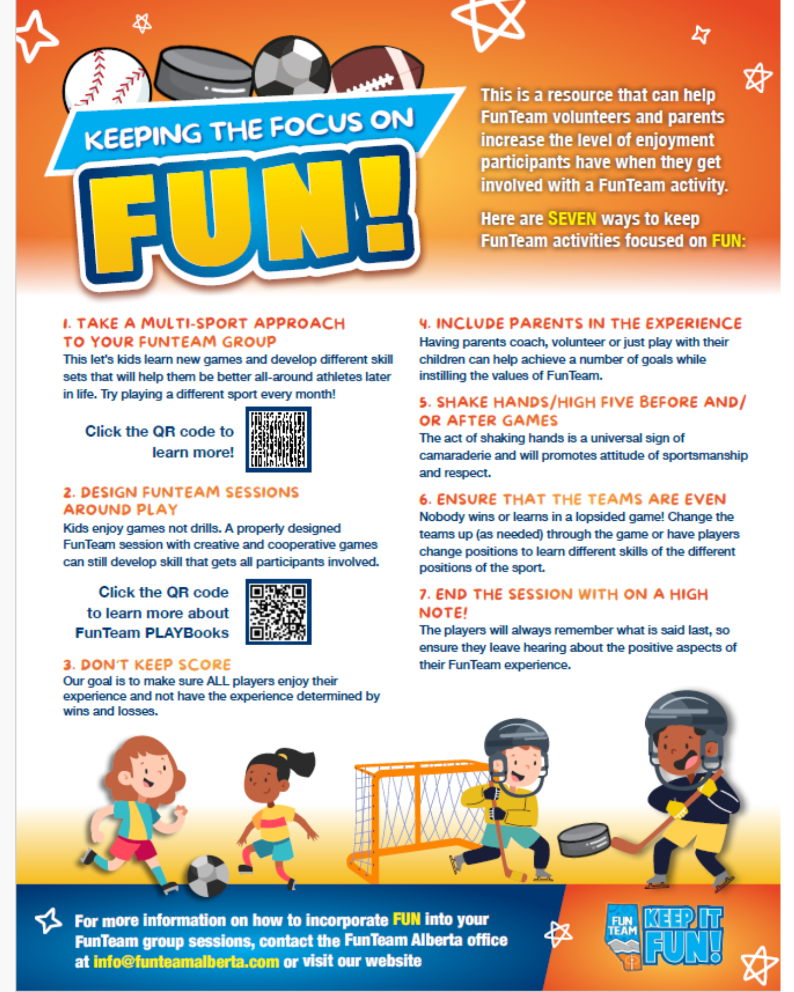 We have developed a one-page resource that can help FunTeam volunteers and parents increase the level of enjoyment participants have when they get involved with a FunTeam activity. Click the icon below to learn more and to download for your volunteers.